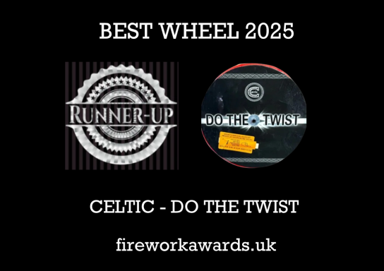 We are proud to announce that Celtic Fireworks have done it again and won Best Brand 2025, 2024, 2023 for an unprecedented 3rd year in a row, the Gold Selection Box By Kimbolton has won Best Selection Box 2025/2024 for the 2nd year in a row. Moves Like Jagger has won Best Small Cake 2025, Golden Waterfalls by Quantum Fireworks has come in as Runner Up in Best Small Cake 2025 category. Do The Twist Wheel By Celtic Fireworks is Runner Up in Best Wheel category. You couldn't go wrong by including any of these fireworks in your garden display this year, they are in stock at the moment.